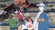 Sarada is seen after running an obstacle course in groups of three. However Shino fails all students, because the few who complete the course did so by leaving their teammates behind. Konohamaru and Moegi tell the students they'll occasionally drop by for the purposes of seeing who fight be under their command, and encourage them to see which formations work better.
